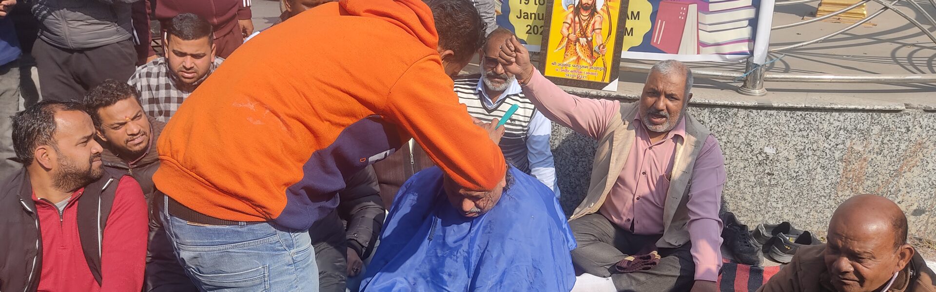 उत्तर प्रदेश की भाजपा सरकार के खिलाफ रोष प्रकट करते हुए बुधवार को चंद्राचार्य चौक पर धरना प्रदर्शन करते हुए कुछ ब्राह्मणों द्वारा मुंडन करवा कर इस कृत्य की कड़ी निंदा की।