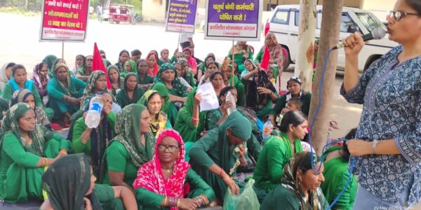 मजदूर विरोधी नीति के खिलाफ श्रमिक महिलाएं उतरी सड़क पर