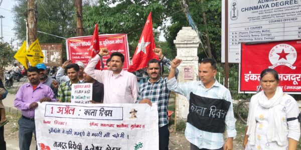 हरिद्वार। केंद्र सरकार द्वारा 1 अप्रैल 2026 से चार मजदूर संहिताओं (Labour Codes) को पूर्ण रूप से लागू करने के खिलाफ इंकलाबी मजदूर केंद्र और संयुक्त संघर्षशील ट्रेड यूनियन मोर्चा ने आज चिन्मय डिग्री कॉलेज चौराहे पर विरोध सभा आयोजित…