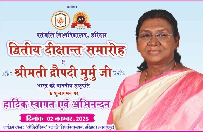 -राष्ट्रपति द्रौपदी मुर्मु पतंजलि विश्वविद्यालय के द्वितीय दीक्षांत समारोह में होंगी मुख्य अतिथि