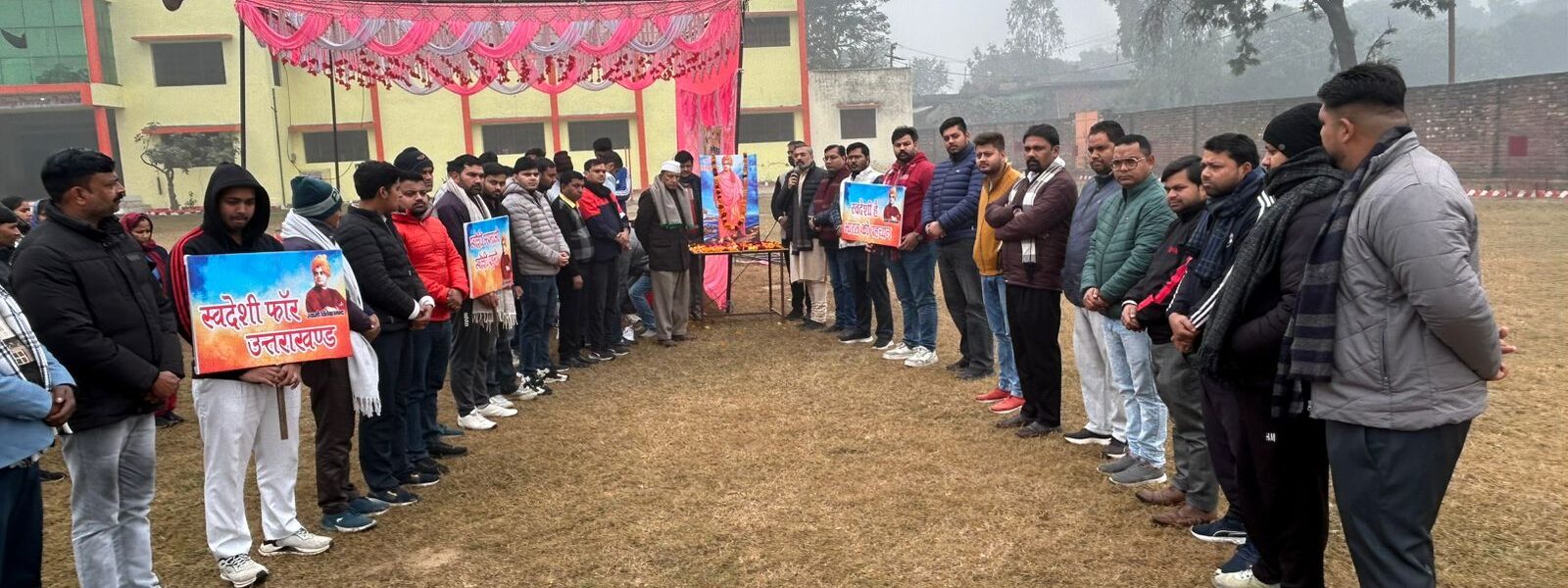 फेरूपुर रामखेड़ा स्थित डिग्री कालेज में स्वामी विवेकानंद की 164वीं जयंती के अवसर पर स्वदेशी संकल्प दौड़ का आयोजन किया गया। संकल्प दौड़ का शुभारंभ भाजपा जिला अध्यक्ष आशुतोष शर्मा, जिला उपाध्यक्ष लव शर्मा, जगपाल सैनी, धर्मेंद्र चौहान और विक्रम भुल्लर ने झंडी दिखाकर किया। इस अवसर पर भाजपा जिला अध्यक्ष आशुतोष शर्मा ने कहा कि स्वामी विवेकानंद ने कहा है कि उठो जागो और तब तक मत रुको जब तक लक्ष्य प्राप्त न हो जाए। ऐसे महान व्यक्तित्व की जन्म जयंती के अवसर पर सब युवाओं को विकसित भारत के सपने को साकार करने के लिए निरंतर कार्य करने का संकल्प लेना है। उन्होंने कहा कि स्वामी विवेकानंद ने अंतरराष्ट्रीय स्तर पर भारत का मस्तक ऊंचा किया है। उनकी शिक्षाएं युवाओं को आगे बढ़ाने की प्रेरणा देती है। युवाओं के कंधों पर इस देश का भविष्य टिका है। उन्हें मानसिक रूप से मजबूत होकर देश सेवा में लगना चाहिए। युवा मोर्चा प्रभारी लव शर्मा ने कहा कि स्वामी विवेकानंद ने अमेरिका स्थित शिकागो में सन 1893 में आयोजित विश्व धर्म संसद में भारत की ओर से सनातन धर्म का प्रतिनिधित्व किया था। उनकी जयंती मनाने का मकसद है कि नौजवान उनके प्रेरणादायक विचारों और आदर्शों से परिचित हो और उनके बताएं मार्ग पर चलें। प्रदेश उपाध्यक्ष किसान मोर्चा जगपाल सैनी ने सभी का आभार व्यक्त करते हुए कहा कि सभी युवाओं को शिक्षा और खेल से जुड़कर देश सेवा करनी चाहिए। नशे और बुराइयों से बचना चाहिए। युवा देश की पूंजी है। इस अवसर पर भाजपा जिला महामंत्री हीरा सिंह बिष्ट, प्रदेश उपाध्यक्ष विक्रम भुल्लर, प्रदेश मंत्री तरुण चौहान, जिला महामंत्री दीपांशु शर्मा, कार्यक्रम संयोजक सचिन चौहान, सहसंयोजक चीनू, नितीश चौधरी, जिला मंत्री लेखराज, प्रियांशु गोयल, मंडल अध्यक्ष विवेक चौहान, रीनू चौधरी, मोहित चौहान, श्रवण चौहान, दीपक सैनी, आदर्श कश्यप, सचिन आर्य, राहुल चौहान, विनीत प्रताप सिंह, राजु पाल, बीरसिंह कश्यप सहित सैकड़ो युवा सम्मिलित हुए।