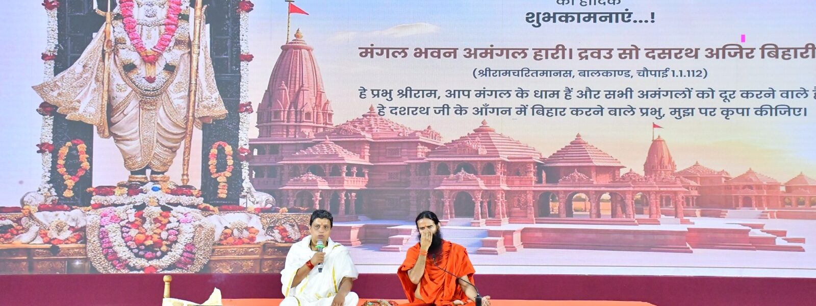 कार्यक्रम में भारतीय शिक्षा बोर्ड के कार्यकारी अध्यक्ष एन.पी. सिंह ने कहा कि यदि श्री राम धर्म के विग्रह हैं तो पूज्य स्वामी रामदेव जी महाराज 21वीं सदी में श्री राम के साक्षात विग्रह हैं। उन्होंने कहा कि श्री राम मात्र हमारे आध्यात्मिकता के केंद्र बिंदु नहीं हैं, मात्र हमारी सामाजिक सांस्कृतिक धरोहरों की जीवंतता को बरकरार रखने वाले प्रतीक नहीं हैं अपितु राम सनातन रूप से आने वाली सभी सहस्त्राबियों के लिए भारत ही नहीं विश्व के लिए एक मानक व्यक्तित्व के रूप में प्रेरणा स्त्रोत व मार्गदर्शक रहेंगे।