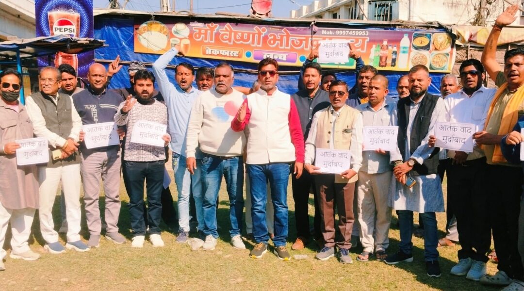 महानगर व्यापार मंडल के पदाधिकारियों व्यापारियों एवं स्थानीय निवासियों ने नारेबाजी के साथ आतंकवाद और पाकिस्तान के खिलाफ प्रदर्शन किया। अध्यक्ष सुनील सेठी ने कहा कि देश में हो रही आतंकी घटनाआें से देश के नागरिकों में रोष है, लोग डरे हुए हैं। जिस तरह आतंकी देश में दशहत फैलाने का काम कर रहे हैं। उसे रोकने के लिए केंद्र सरकार को सख्त कदम उठाने चाहिए। सेठी ने कहा कि राष्ट्रीय सुरक्षा एजेंसियों को जिन स्थानों और संस्थानों से आतंकी पकड$े जा रहे है उन्हें बंद कर देना और आतंक फैलाने में शामिल लोगों पर राष्ट्रद्रोह मुकद्मा चलाकर जल्द से जल्द फांसी की सजा दिलानी चाहिए। हरीश अरोड$ा, डा. निशीथ एेरन एवं हरिमोहन भारद्वाज ने कहा कि देश में आतंकियों की बढ$ती घुसपैठ को रोकने के लिए अब कड$े कदम उठाने पड$ेंगे। सरकारों को बड$े निर्णय लेते हुए देश की सुरक्षा के लिए ठोस नीति को धरातल पर उतारना चाहिए। आतंकियों के बढ$ रहे हौसलों को तोड$ना होगा। प्रदर्शन करने वालों में राकेश जमदग्नि, हरिमोहन भारद्वाज, रामनिवास गोयल, समाजसेवी हरीश साहनी, हनी अग्रवाल, देव माहेश्वरी, आनंद यादव, लाल सिंह पांडे, लक्की अनेजा, सुनील मनोचा, प्रीत कमल, रमन सिंह, कपिल कुमार, जनार्दन पांडे, वीरेंद्र नेगी, दिनेश कुमार, राजू जोशी, मनोज कुमार, राजकुमार मिश्रा, सन्नी अरोड$ा, विनोद ठाकुर, नीरज, नवीन कुमार, सचिन अग्रवाल, राहुल शर्मा, कमल, शंकर सिंह, सोनू चौधरी आदि शामिल रहे।