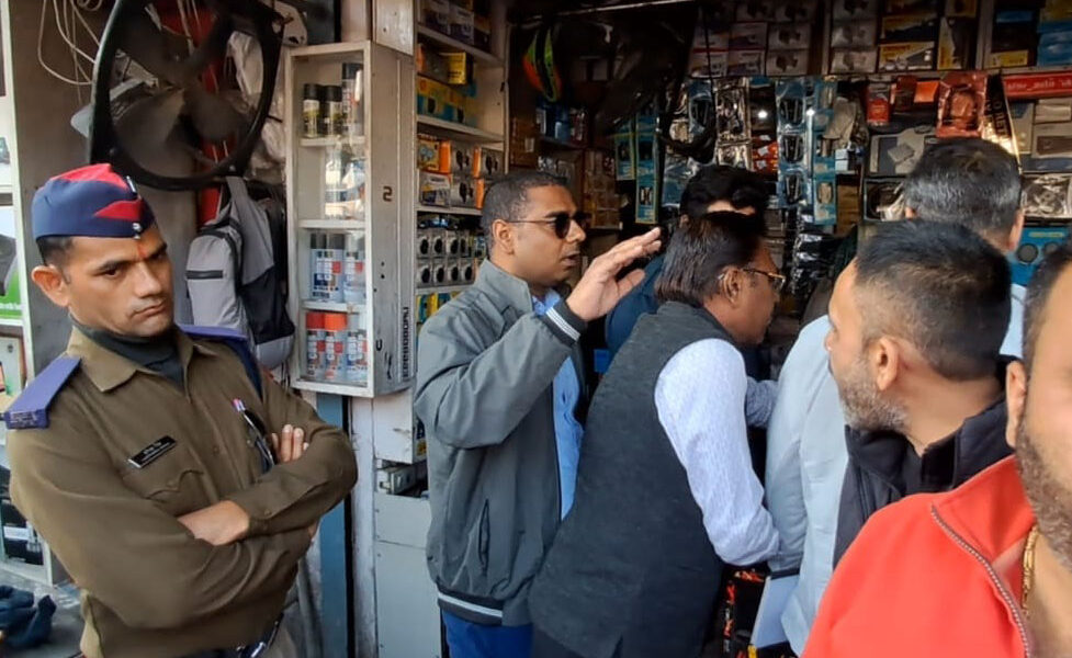 फोटो—7/एसेसरीज वाली दुकानों का निरीक्षण करते परिवहन विभाग की टीम।