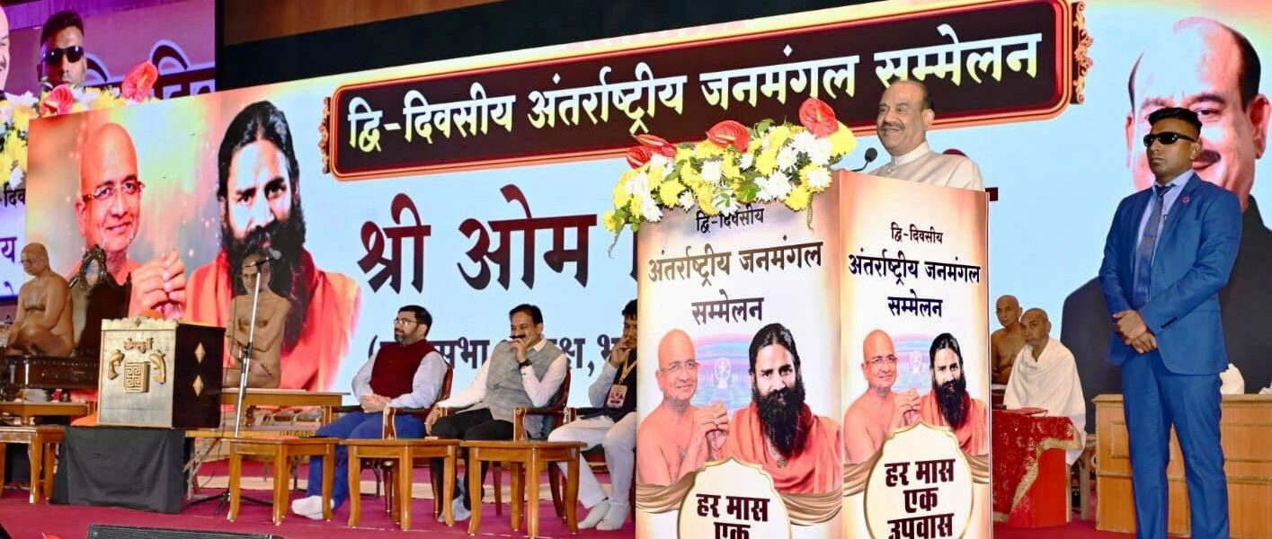 भारत मंडपम में दो दिवसीय इंटरनेशनल जनमंगल सम्मेलन आयोजित किया गया। जिसमें योग और उपवास के दो प्रसिद्ध संतों योग ऋषि स्वामी रामदेव महाराज और जैन संत अंतर्मना आचार्य प्रसन्न सागर महाराज के दिव्य मार्गदर्शन में, एक जन आंदोलन हर मास – एक उपवास (हर महीने 7 तारीख को एक बार उपवास) शुरू किया गया। यह द्वि-दिवसीय सम्मेलन 4 सत्रों में जनमंगल की सम्यग्ष्टि -उपवास, ध्यान, योग व स्वदेशी चिंतन पर केन्द्रित है। दोनों युग—पुरूषों ने जनमंगल के लिए हर मास एक उपवास महाभियान से मानवता को समस्त सिद्धिदायक महामंत्र देने का संकल्प किया है। इस आंदोलन से देश के प्रमुख संतगण, राजनेता तथा विख्यात हस्तियों के साथ—साथ दुनिया भर में लाखों लोग जुड$ चुके हैं। सम्मेलन का अध्यक्षीय उदबोधन देते हुए लोकसभा स्पीकर आेम बिरला ने कहा भारत मण्डपम की यह भूमि आध्यात्मिक एवं सांस्कृतिक विज्ञान का अद्भुत साक्षी बन रहा है। पूज्य अंतर्मना ने देश के विभिन्न क्षेत्रों में धर्म, अध्यात्म, संस्कृति, विज्ञान, वैयक्तिक विकास व आत्म विकास के लिए अपना जीवन समर्पित कर दिया। इनका तप—तपस्या अद्भुत है। यह आयोजन अध्यात्म और कर्मयोग का दिव्य संगम है जो निश्चित ही देश व दुनिया को नया संदेश देगा। देश की राजधानी दिल्ली से देश को संदेश जाएगा और देश से दुनिया तक यह बात पहुँचेगी। जहाँ एक आेर आचार्य प्रसन्न सागर जी महाराज आध्यात्मिक ज्ञान का दर्शन देकर आत्म विकास का मार्ग बता रहे हैं तो वहीं दूसरी आेर स्वामी रामदेव महाराज कर्मयोग, भारतीय शिक्षा, स्वदेशी जीवन और योग विज्ञान के माध्यम से देश व दुनिया को स्वास्थ्य प्रदान कर रहे हैं। श्री बिरला ने कहा कि उपवास से शरीर व मन स्वस्थ रहते हैं, इससे इन्द्रियों को वश में किया जा सकता है। इंटरनेशनल जनमंगल सम्मेलन समसामायिक दृष्टिकोण से बहुत महत्वपूर्ण है। उन्होंने एक माह-एक उपवास का संकल्प लेते हुए कहा कि मैं भी माह में एक बार उपवास करूंगा। कार्यक्रम में अंतर्मना प्रसन्न सागर महाराज ने कहा कि उपवास आत्मिक ऊ र्जा को जगाने वाला दिव्य साधन है। उपवास का उद्देश्य तन, मन व आत्मा को शुद्ध करना है। उपवास तन की स्वच्छता, मन के परिशोधन, जीवन के पुनर्गठन व जीवन के उत्थान का सर्वोत्तम साधन है। उपवास के दौरान भावनाएँ नियंत्रित होती हैं, क्रोध घटता है, मन शांत होता है और ध्यान गहरा होता है। व्यक्ति नकारात्मक विचारों से मुक्त होकर सकारात्मकता और मानसिक स्थिरता का अनुभव करता है। अंतर्मना ने कहा कि उपवास आत्मा का भोजन है जो साधक को आसक्ति से मुक्त करता है। उपवास शरीर को एेसी प्रातिक अवस्था में ले जाता है जहां शरीर स्वयं का उपचार करता है। उपवास से प्रतिरक्षा प्रणाली भी मजबूत होती है। यह वह अवस्था है जहां शरीर 
